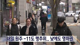 내일 아침 출근길 맹추위.. 낮에도 영하권